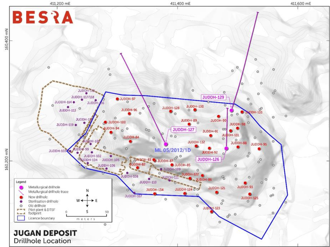 - Metallurgical drill program completed, with assay results confirming the continuity of gold mineralisation down-plunge of the Jugan Resource.