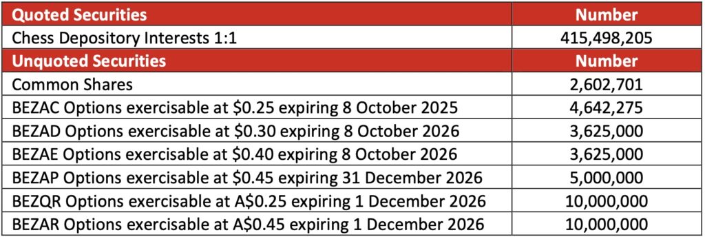 The Board of Besra Gold Inc (ASX: BEZ) (Besra or the Company) and its wholly-owned subsidiary, North Borneo Gold Sdn Bhd (NBG), are pleased to provide this Activities Report for the Quarter ended 30 September 2025 (September 2025 Quarter), which accompanies the September 2025 Quarter Cash Flow Report.
